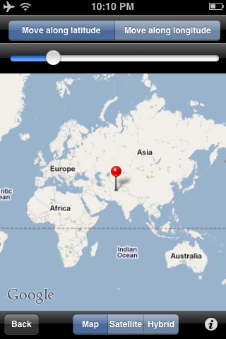 Across Earth is an iPhone app which can help you move across the earth from your location. It can tell you where you would be if you move across the Earth through the core of the Earth or through the Axis of the Earth. Also, you can find out which places are at the same latitude or longitude as your current location on the Earth. Across Earth provides a fun and unique perspective for you to understand your location and the Earth.