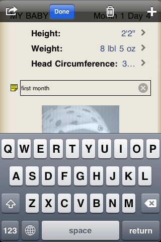 3. Edit an event, you can specify your baby's height, weight, and head circumference at that time.